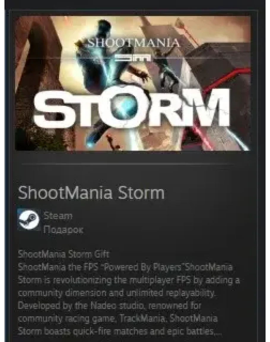 ShootMania FPS “От игроков”ShootMania Storm революционизирует многопользовательский FPS, добавляя аспект сообщества и неограниченную реиграбельность. Разработан студией Nadeo, известной своими гоночными играми для сообщества, TrackMania, ShootMania Storm boats, скорострельными матчами и эпическими сражениями...