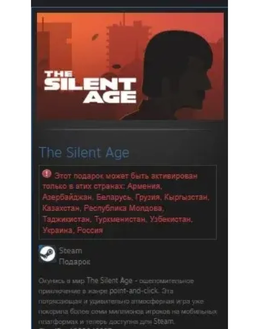 Окунись в мир The Silent Age - ошеломительное приключение в жанре point-and-click. Эта потрясающая и удивительно атмосферная игра уже покорила более семи миллионов игроков на мобильных платформах и теперь доступна для Steam.