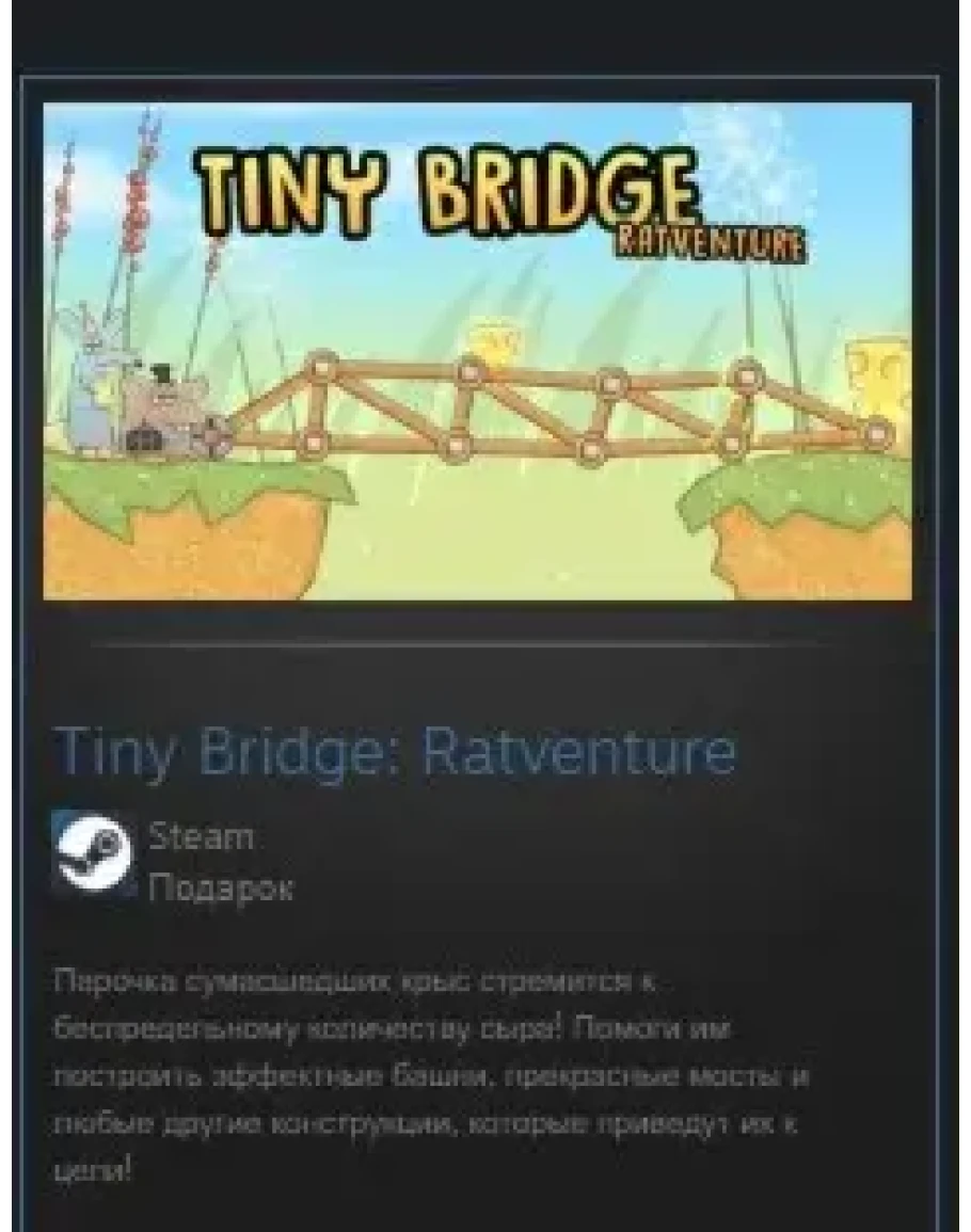 Парочка сумасшедших крыс стремится к беспредельному количеству сыра! Помоги им построить эффектные башни, прекрасные мосты и любые другие конструкции, которые приведут их к цели!