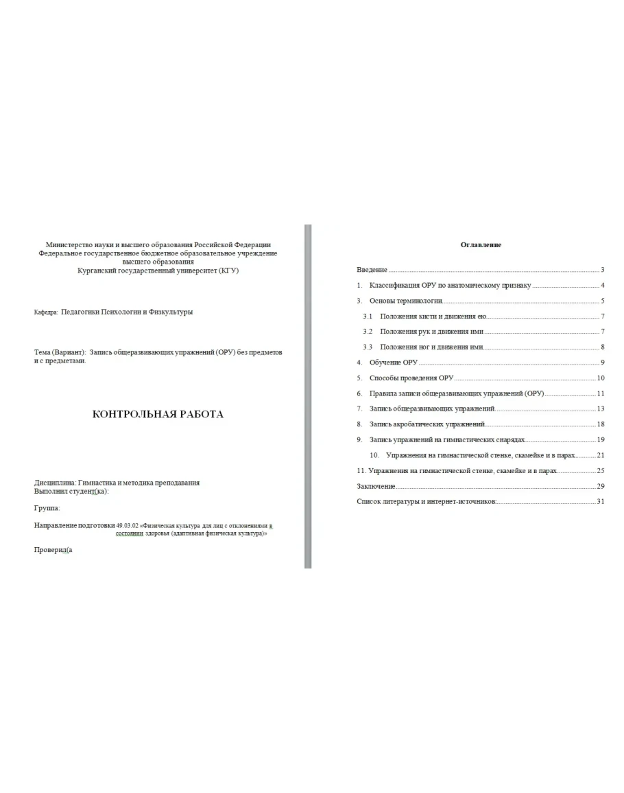 Тема (Вариант): Запись общеразвивающих упражнений (ОРУ) без предметов и с предметами.