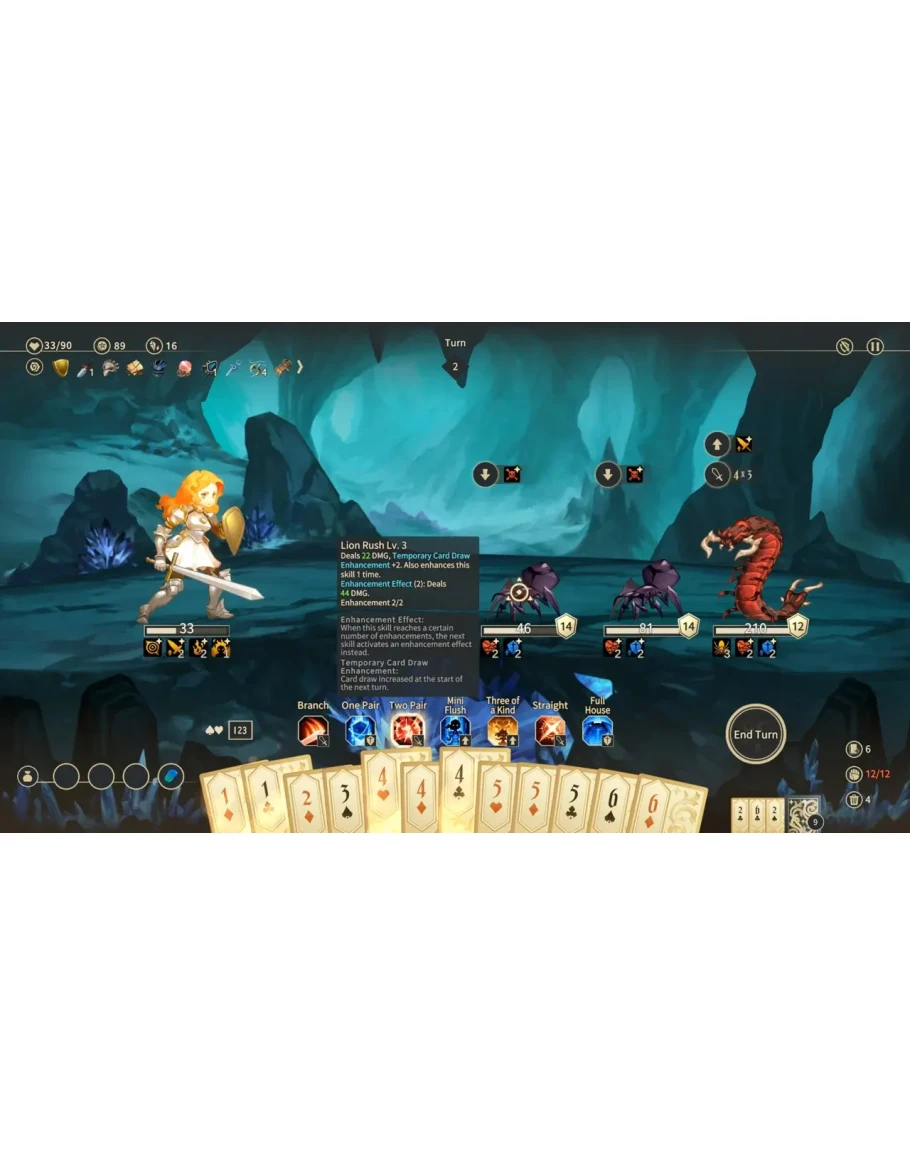 В Zoeti ваше главное оружие — колода карт. Разыгрывая различные комбинации (пара, фулл-хаус, флеш-рояль), вы активируете навыки, позволяющие атаковать врагов или защищаться от них. Пополняйте свой арсенал навыков и улучшений по ходу приключения в боях и исследованиях.