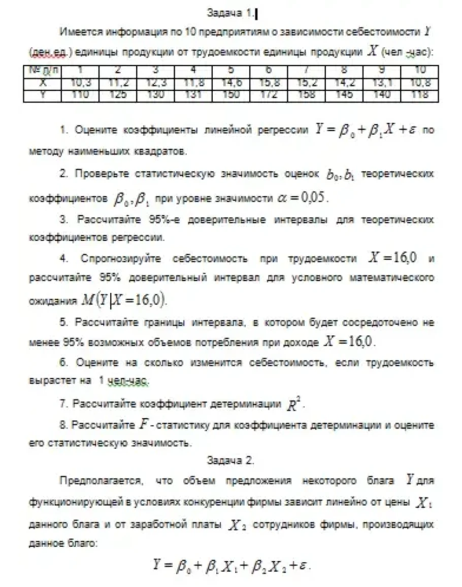 1. Оцените коэффициенты линейной регрессии по методу наименьших квадратов.