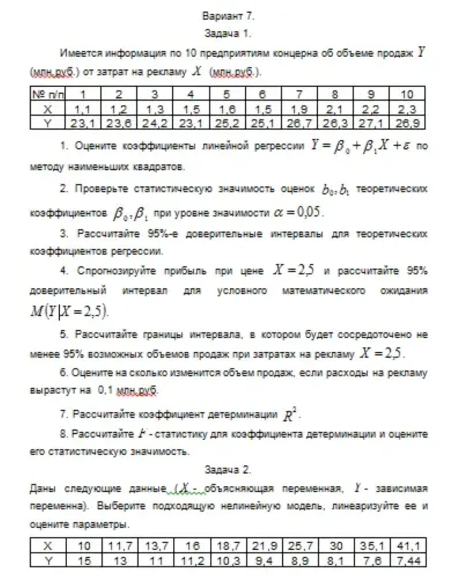 1. Оцените коэффициенты линейной регрессии по методу наименьших квадратов.